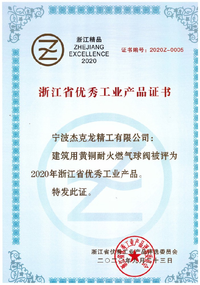 2018年11月8日,杰克龍精工公司正式獲得由浙江制造國際認(rèn)證聯(lián)盟和杭州漢德質(zhì)量認(rèn)證服務(wù)有限公司聯(lián)合簽發(fā)的《浙江制造認(rèn)證證書》,